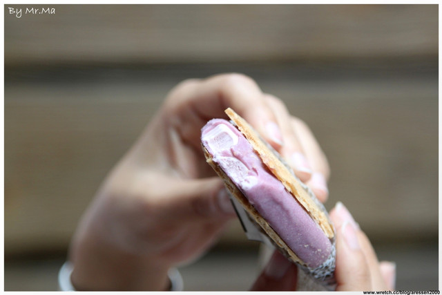 最外層為脆皮餅乾 往內為巧克力餅皮 最裡面才為冰淇淋